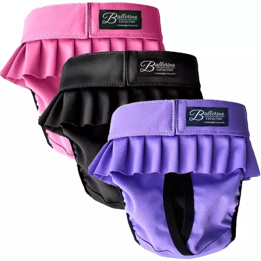 Ballerina-juoksuhousuissa suositellaan käytettäväksi kertakäyttöistä sidettä tai sujauttamaan esim. talouspaperia housun sisäpuolella olevaan verkkokangastaskuun.