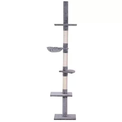 Puu pingotetaan katon ja lattian väliin, korkeus voidaan säätää huonekorkeuden mukaan välille 230-260 cm. Ennen kiipeilypuun käyttöön ottamista suosittelemme varmistamaan lisäkiinnityksen tarpeen erityisesti, jos omistat kookkaita tai hyvin riehakkaita kissoja tai jos lattiamateriaali on liukas. Tue kiipeilypuu tarvittaessa kiinnittämällä se seinään tai pingota naruilla / liinoilla kiinteiden kohtien väliin.