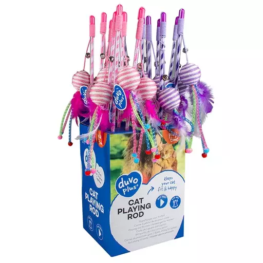 Karkkimaiset värit, kilisevä kulkunen, kieriskelevä pallo ja pomppivaiset hapsut höyhenillä herättävät kissasi mielenkiinnon varmasti! Kuminauhalla varusteltu onkilelu singahtelee yllättäviin suuntiin ja tarjoaa samalla monipuolista liikuntaa sekä ajanvietettä aktiiviselle eläimelle. Yhteiset leikit syventävät kissan ja omistajan välistä suhdetta.