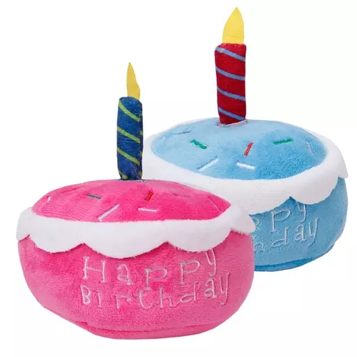 Pehmoinen, vinkuva kakku kruunaa koiran synttäri-partyt! Söötit kakkulelut vingulla ovat lelujen ystävien toivelahja synttäripäivänä. Kakkulelu sopii paitsi kuvausrekvisiitaksi, myös iloisiin leikkeihin juhlapäivänä ja sen jälkeen.