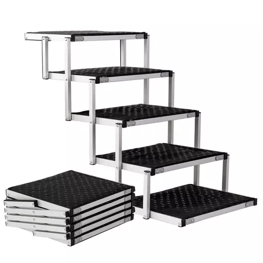 Alumiinirunkoiset, kokoontaittuvat portaat lemmikeille.Helposti siirreltävät, avattavat portaat, joita pitkin lemmikin on helppo kiivetä esim. autoon tai muille korkeille paikoille. Portaissa on kestävä, mutta kevyt alumiinirunko. Porrastasanteet ovat vaneria, jotka on päällystetty vaahtomuovilla ja muovitetulla, vahvalla kaksinkertaisella oxford-kankaalla. Kankaan pinnassa on kuminen liukuestekuviointi. Rappusia pitkin lemmikki voi kiivetä niin autoon kuin vaikkapa trimmauspöydälle, sänkyyn ja muille korkeille paikoille kotona ja reissussa.