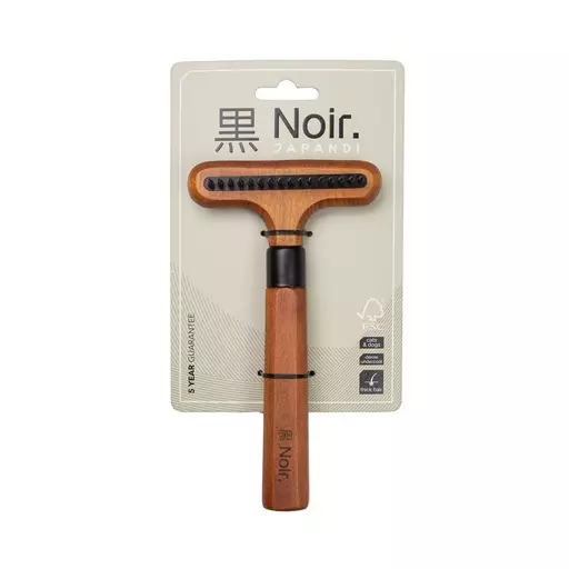 Noir Japandi -hara poistaa tehokkaasti kuollutta ja irtonaista karvaa tiheästä aluskarvasta, erityisesti karvanlähdön aikaan. Harassa on yksi rivi galvanoituja, ruostumattomasta teräksestä valmistetut piikit, jotka pyörivät ja joustavat, tehden harjauksesta hellävaraista ja tehokasta.