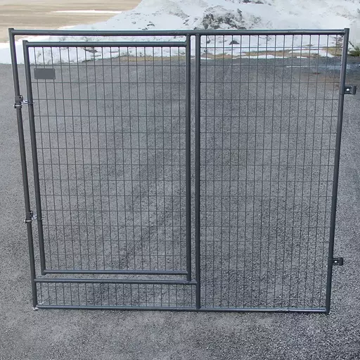 2 m leveä sinkitty ja maalattu ovielementti reilummalla, 1 m leveällä oviaukolla.Sinkitty ja maalattu ovielementti, jonka leveämmästä (1 m) ovesta mahtuu helposti kottikärryt, ruohonleikkuri ja muut leveät kuljetukset. Ovielementtiä voidaan käyttää Jämpti Pro MEDI Sinkityn + maalatun tarhan ovielementtinä sekä kotitekoisten, verkkorullasta valmistettujen tarhojen oviaukkona. Tämä vaatii reikien poraamista raamiputkeen puukehykseen ruuvaamista varten. Ovi voidaan kiinnittää myös rakennuksen seinään erillisten seinäkiinnikkeiden avulla (Jämpti Pro Seinäkiinnike, sinkitty). Ovielementti leveällä ovella on kätevä myös sisätiloihin rakennettujen aitausten yhteydessä, esim. kenneltiloissa. Elementin kanssa toimitetaan kaksi kiinnikettä. Kiinnikkeitä on saatavana lisää erikseen. Elementin ovi aukeaa sekä sisään- että ulospäin. Ovielementin mukana toimitetaan kaksi lukkoa jotka ovat avattavissa ja suljettavissa molemmin puolin tarhaa.