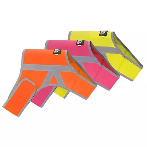 - Raikas huomioväri ja runsaasti heijastinnauhaa varmistavat koiran näkyvyyden.