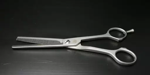 Yksipuoleiset, tasokkaat ohennussakset ruostumattomasta teräksestä. Irrotettava sormituki. 45 hammasta. Kokonaispituus 17 cm. Matta metalli.