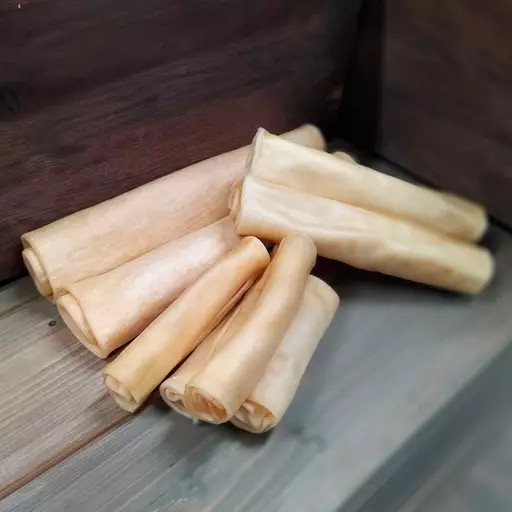 Suomessa valmistettu hirvennahkarulla kotimaisesta hirvennahkasta. Nahkaa ei ole valkaistu, säteilytetty tai käsitelty eikä se sisällä lisä- ja säilöntäaineita. Voimme suositella luonnollista hirvirullaa kaikille koirille, myös herkkävatsaisille kavereille.