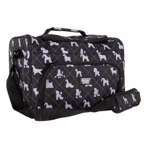 Pehmeistä materiaaleista valmistettu salkku ei hakkaa kivuliaasti omistajan jalkoihin tämän kävellessä ja pehmustetulla tyynyllä varustettu olkahihna lisää salkun käyttömukavuutta myös pitkillä näyttelymatkoilla. Laukun kruunaa tyylikäs kuosi, jossa esiintyy erityisesti trimmattavien rotujen siluetteja.